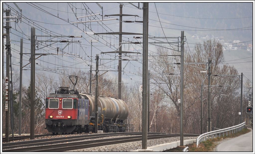 420 276-8 erreicht den Holcim Bahnhof in Untervaz-Trimmis. (08.04.2013)