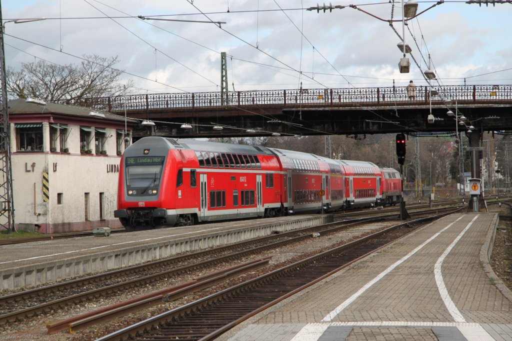 Einfahrt eines IRE Dosto in den Hbf.Lindau.13.04.13
