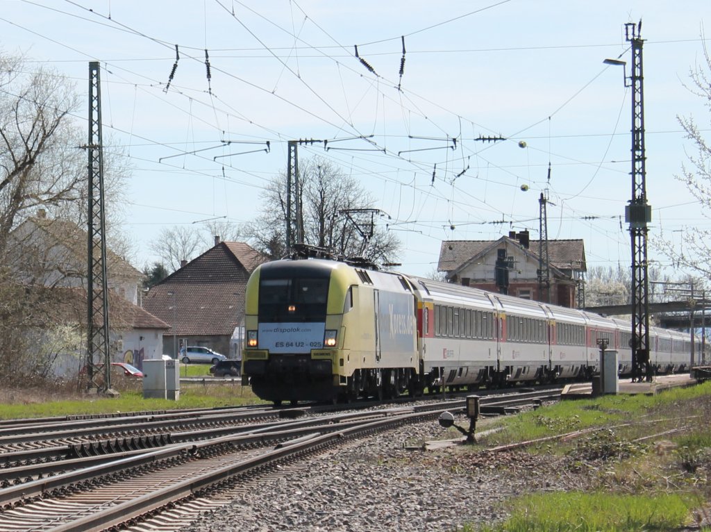Die 103 245 mit einem IC nach München am 13.04.2013 unterwegs bei Hörbach.