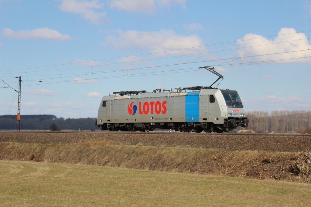 Re 482 047 mit einem Gaskesselzug am 14.04.2013 bei Langenisarhofen.