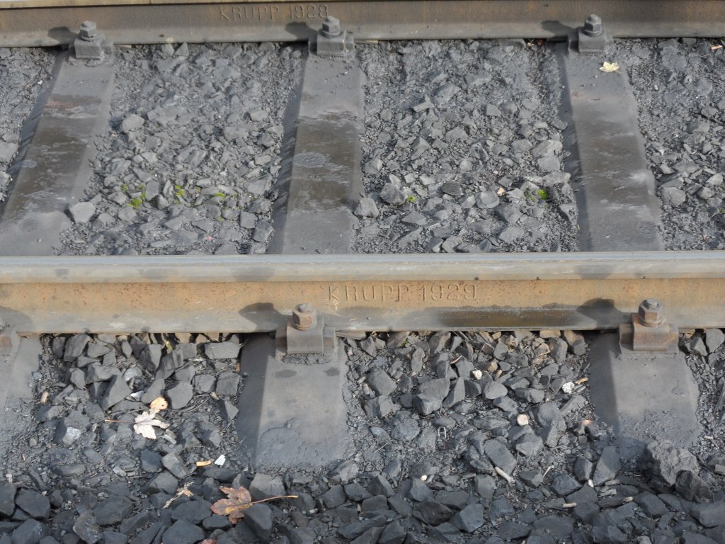 2012-10-08; Gesehen am Bahnhof Schierke - alter Stahl von 1928 (oben) und 1929 hält trotz der täglichen Belastungen. Die Jahreszahl 1928 habe ich erst zu Hause entdeckt, deshalb ist die Schiene nur angeschnitten.