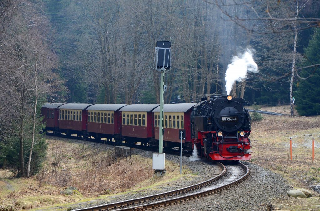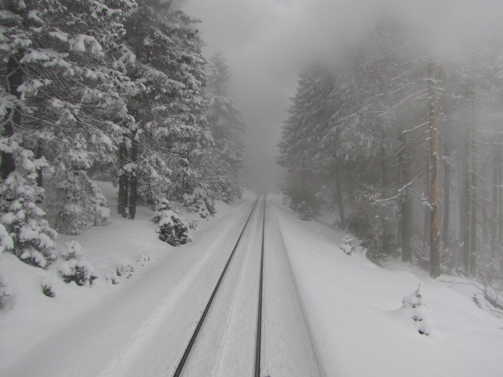 Die Brockenbahn am 29.03.2013 zwischen Schierke und dem Brocken.