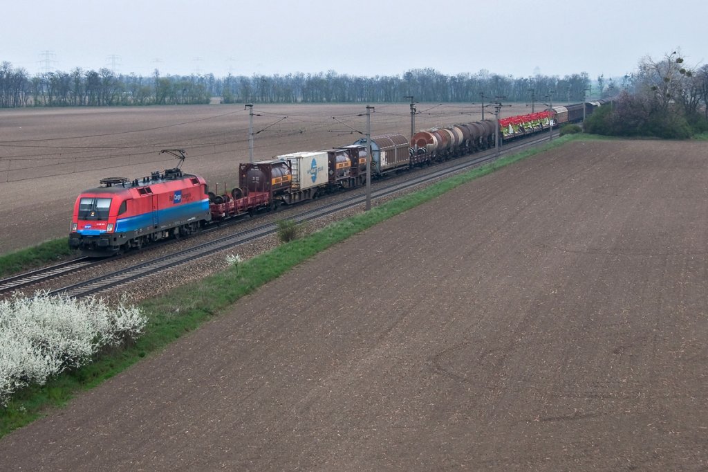 1116 186 war am 20.04.2013 mit diesem Ganzzug (GAG 49600 von Koper nach ´iar nad Hronom) um 17:38 bei Himberg in Richtung Gramatneusiedl unterwegs.