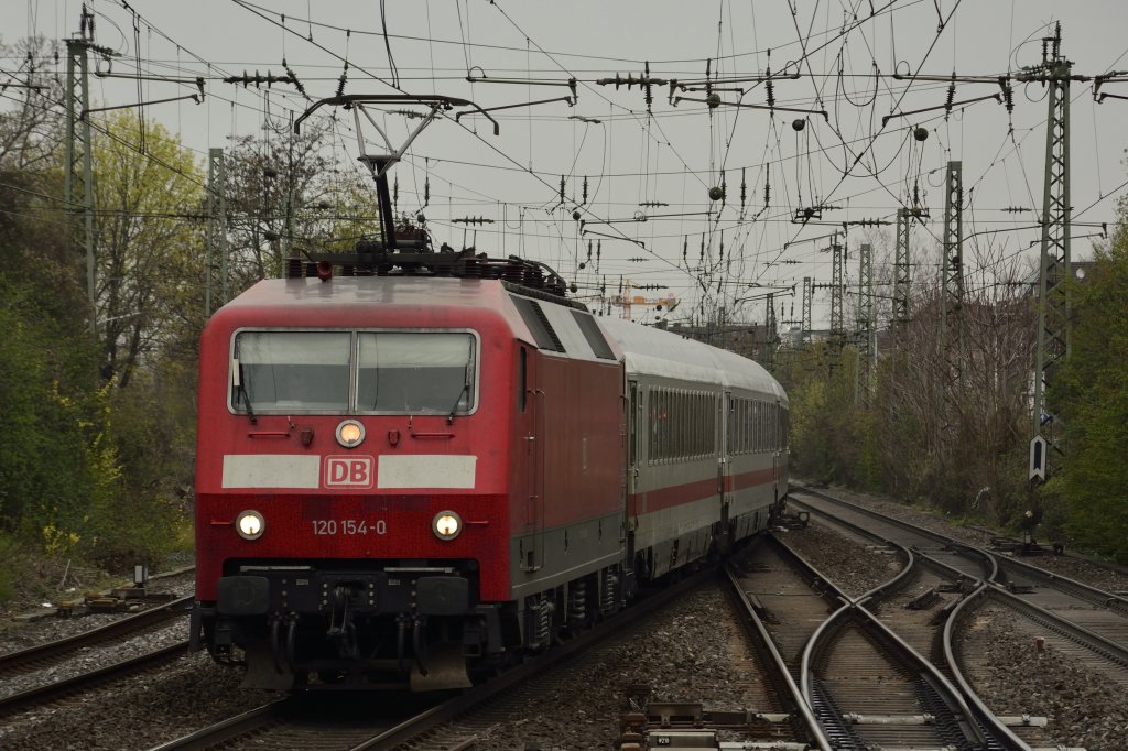 Erste Zugleistung,am 20.April 2013,für 120 127 war die Bespannung des EC 379 von Binz nach Brno bis Stralsund.Aufgenommen in Bergen/Rügen