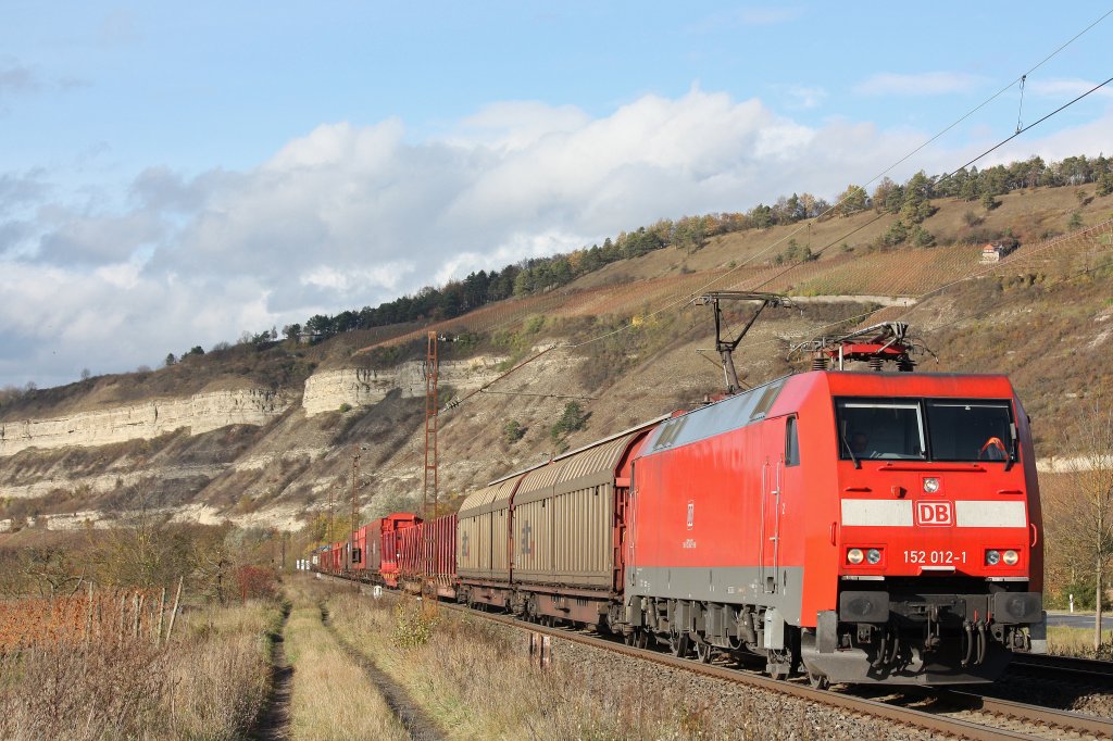 152 012 am 2.11.12 mit einem gemischten Güterzug in Thüngersheim.