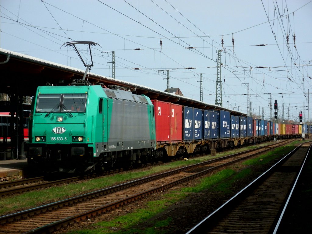 Am 21.04.2013 kam 185 633 der ITL mit einem Containerzug aus Richtung Magdeburg in Stendal an.Nach Personalwechsel ging es dann weiter in Richtung Wittenberge.