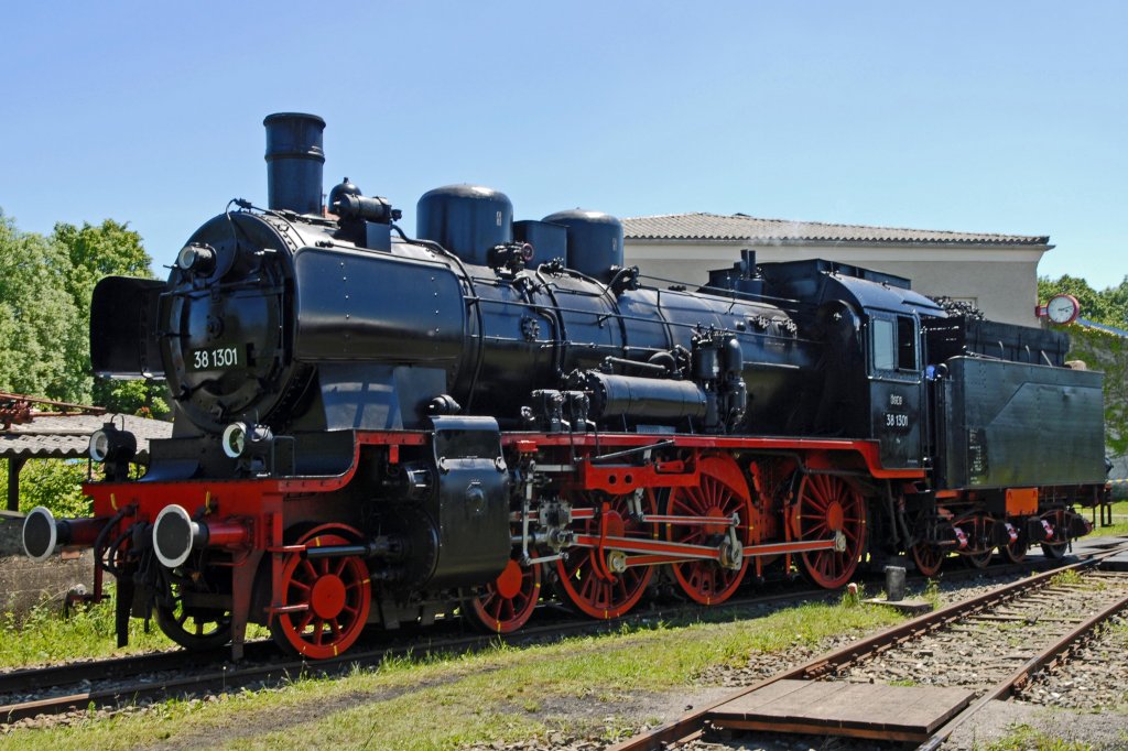 Blank geputzt steht 38 1301 am 04.06.2010 beim Dampflokfest im Bw Nördlingen (Bayerisches Eisenbahnmuseum). Hersteller: August Borsig Lokomotiv-Werke, Berlin Fabriknummer: 8115 Baujahr: 1911 ursprüngl. Fahrzeugnr.: Breslau 2451 Betreibernr. z.Z.d. Aufnahme: 38 1301 Ausmusterung: 23.08.1965 Radsatzfolge: 2'Ch2 Vmax (km/h): 100 Leistung (PSi): 1180 Dienstmasse (t): 78 max. Radsatzfahrmasse (t): 16 LüP (mm): 18.590