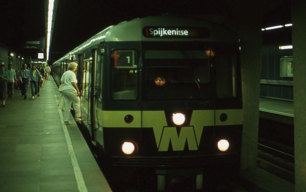 Metro Rotterdam Linie 1 hält am 15.7.1989 in der U-Bahn Station