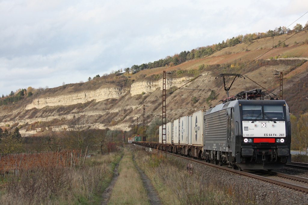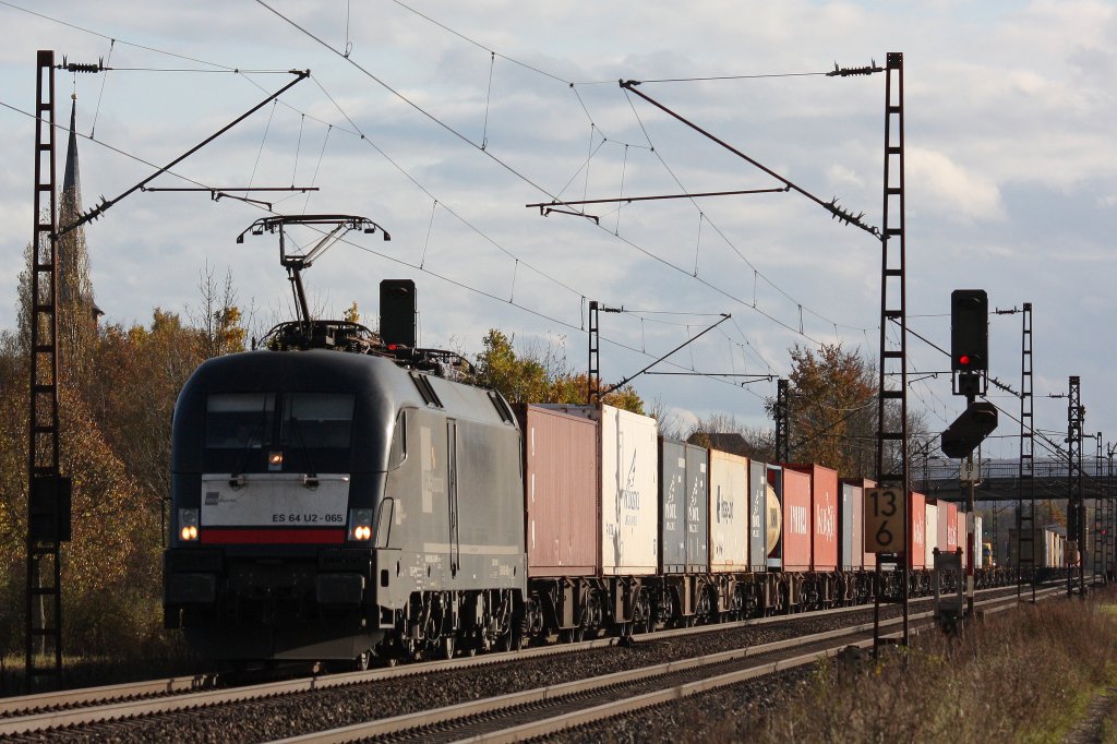 MRCE Dispolok ES 64 U2-065 am 2.11.12 mit einem Containerzug in Thüngersheim.