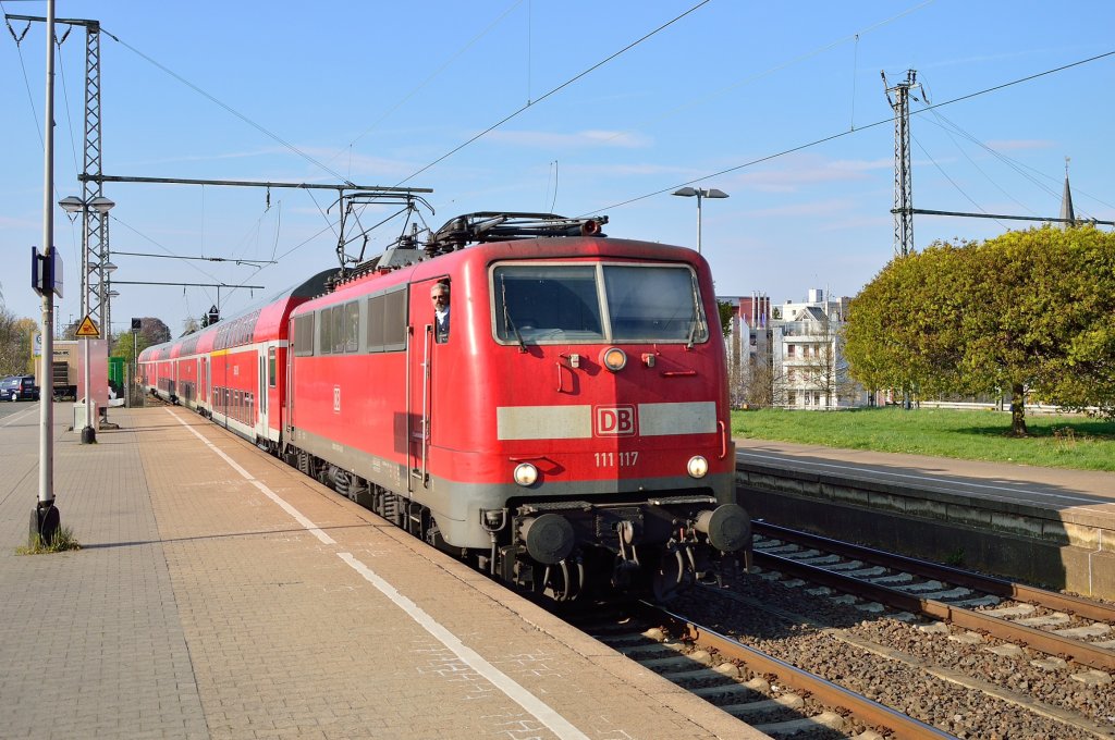 Wer knipst denn da die Einfahrt meines RE 4 Zuges nach Aachen mit der 111 117, der um 18:04 Uhr Rheydt Hbf von Gleis 4 in Richtung Erkelenz verlässt? Ach so Andreas ist es. Mittwoch den 24.4.2013