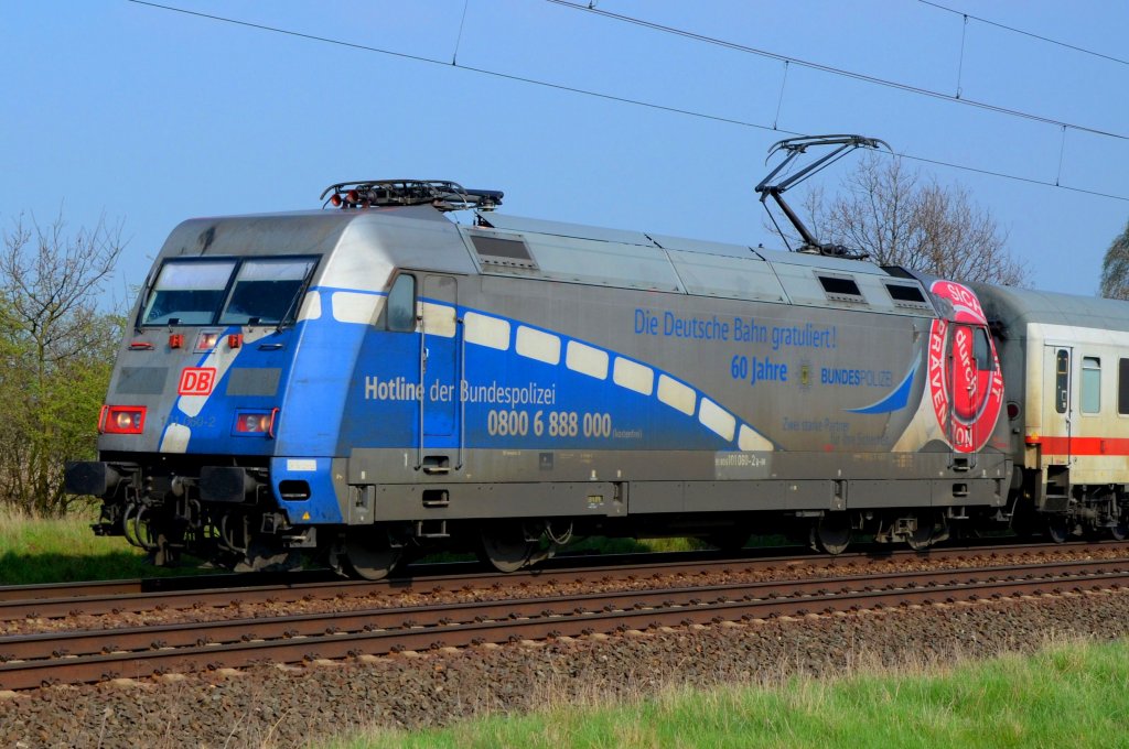 180 008 zog den Porschezug am 09.04.13 von Leipzig-Wahren durch Zschortau Richtung Wittenberg. Momentan wird dieser Zug wegen Bauarbeiten in Leipzig über Falkenberg nach Dresden geführt.