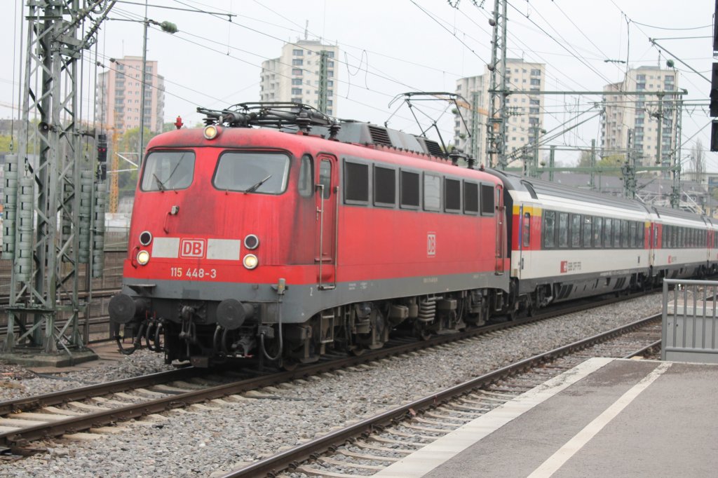 Die Alte Lok der Nummer 115-448-3 bei der Einfahrt am HBF in Stuttgart am 21.04.2013