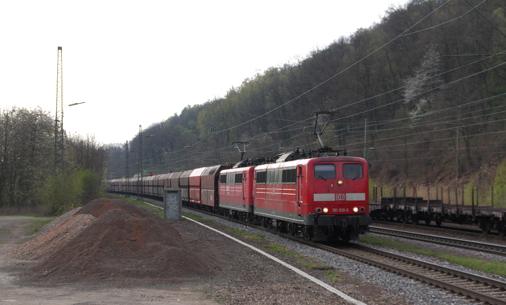 151 012 und eine Schwesterlok bringen Nachschub zum Kraftwerk Bexbach.