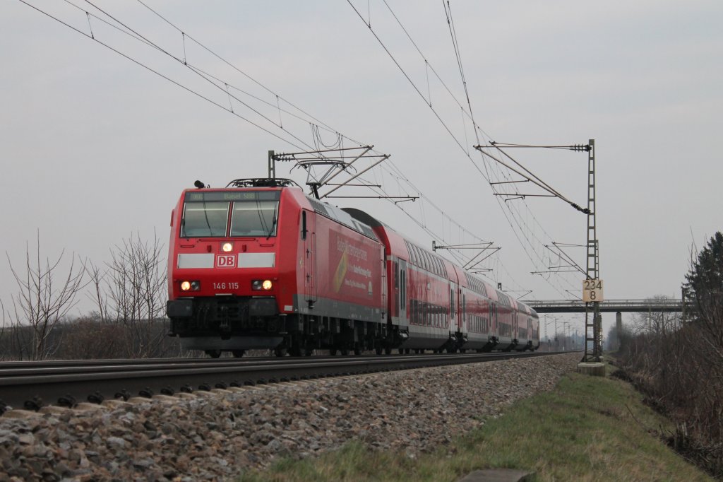 146 236-5 "Triberg" mit dem RE 4713 (Karlsruhe Hbf-Konstanz) bei St.Georgen 4.4.13. Die Lok hatte ein frische HU am 27.03.13 erhalten