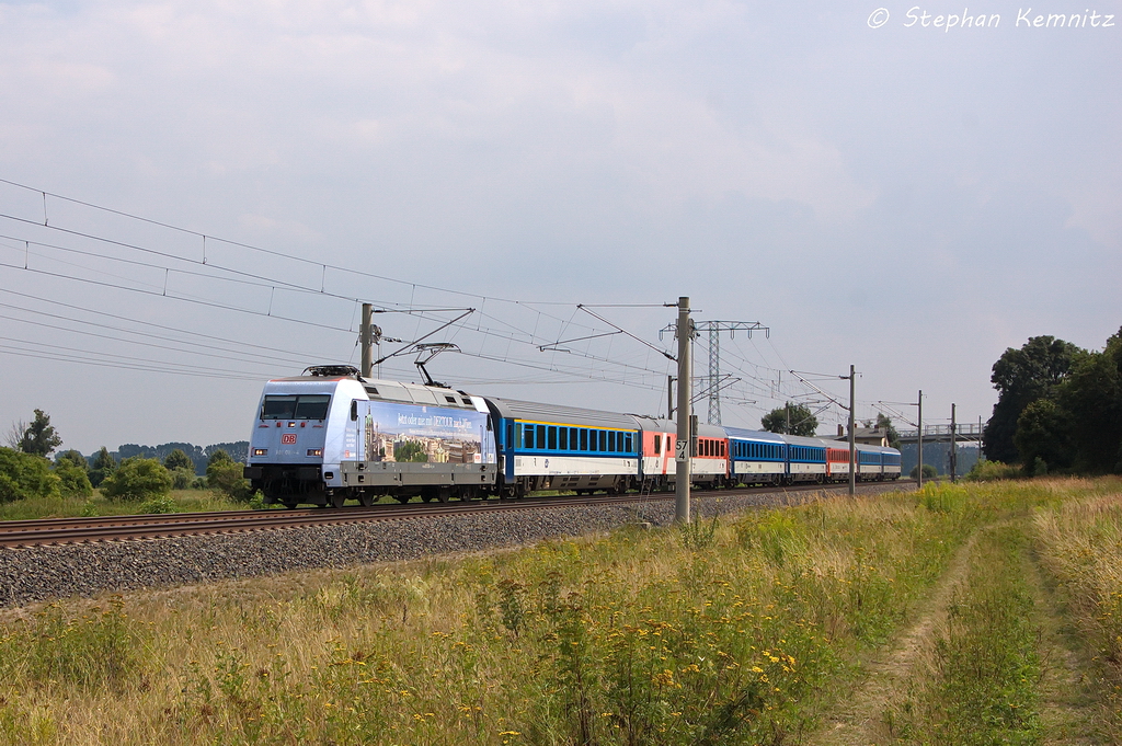 101 016-4 "DERTOUR" mit dem EC 176 "Johannes Brahms" von Brno hl.n. nach Hamburg-Altona in Vietznitz. 10.08.2013