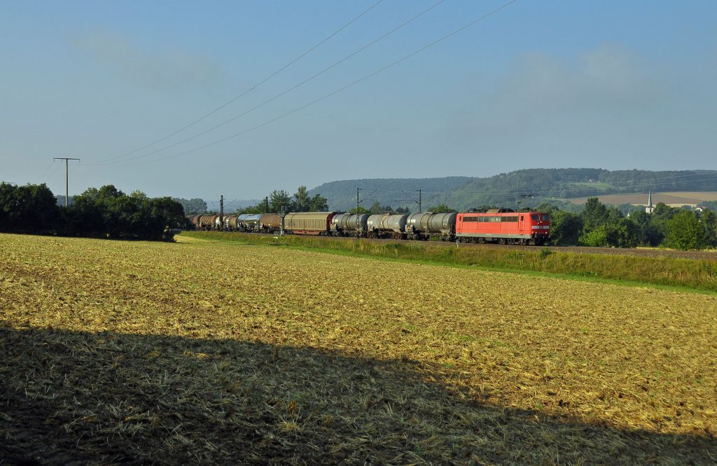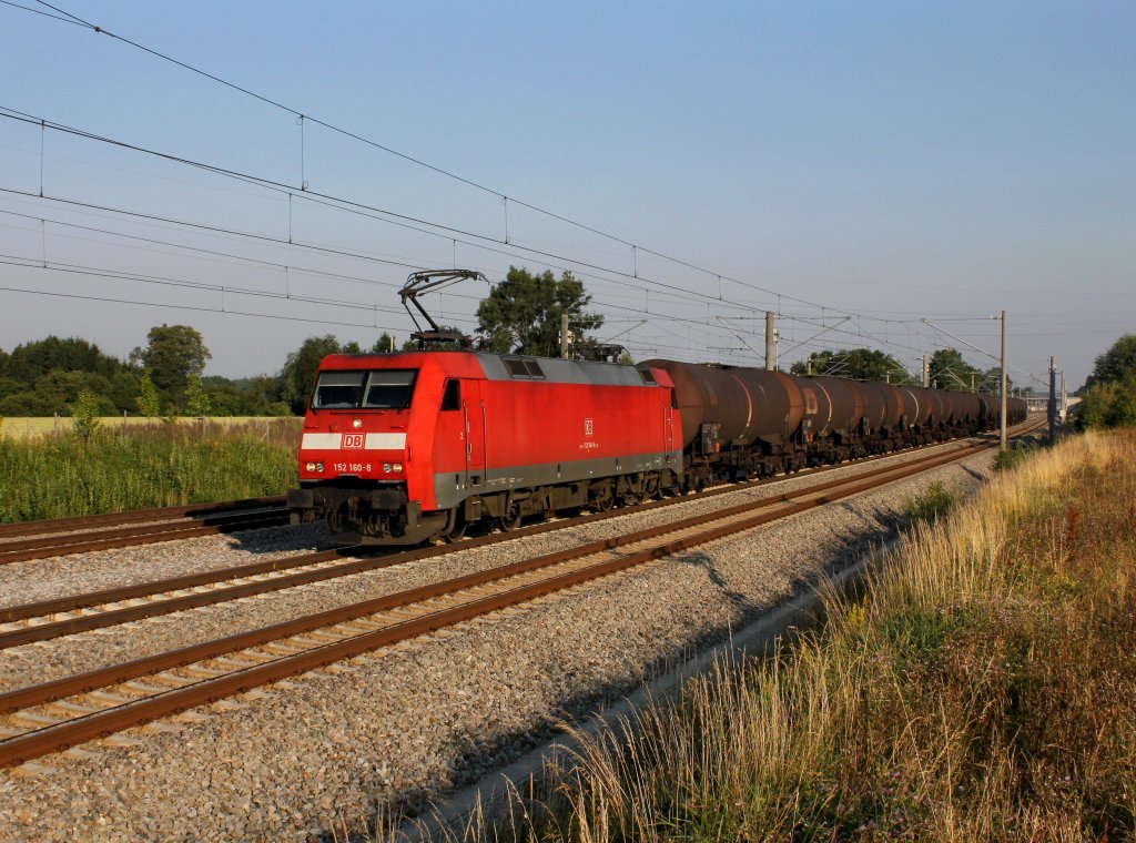 Die 152 160 mit einem Kesselzug am 20.07.2013 unterwegs bei Hörbach.