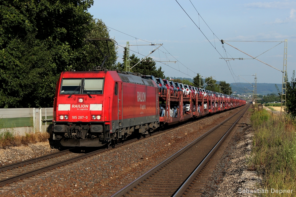 185 287 am 4.8.13 in Pölling mit einem Autozug nach Nürnberg