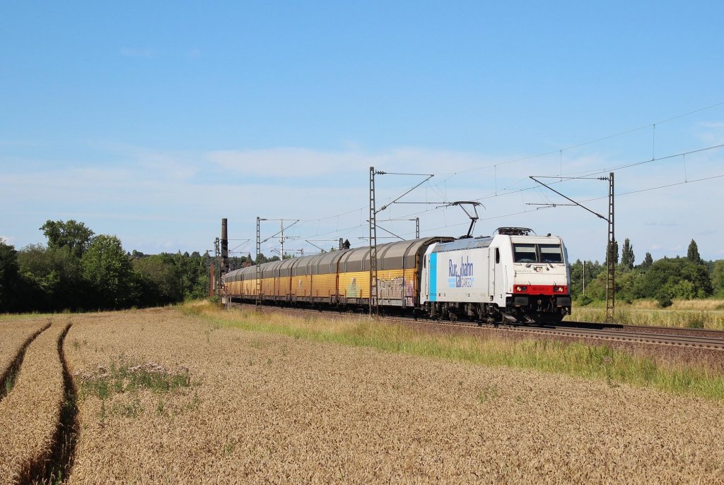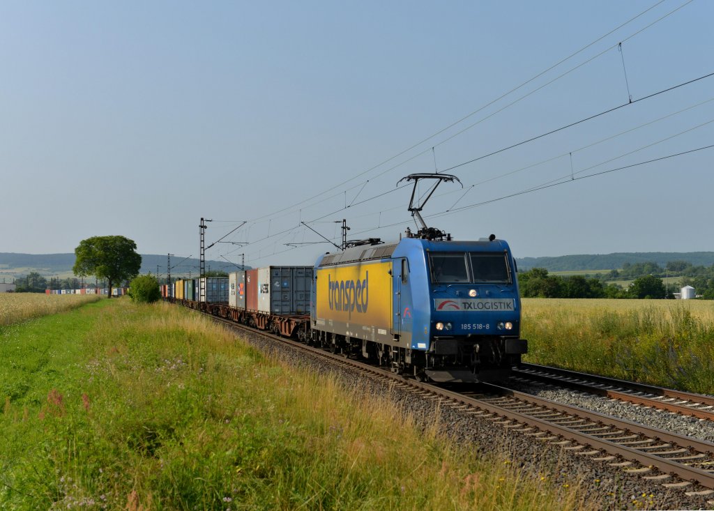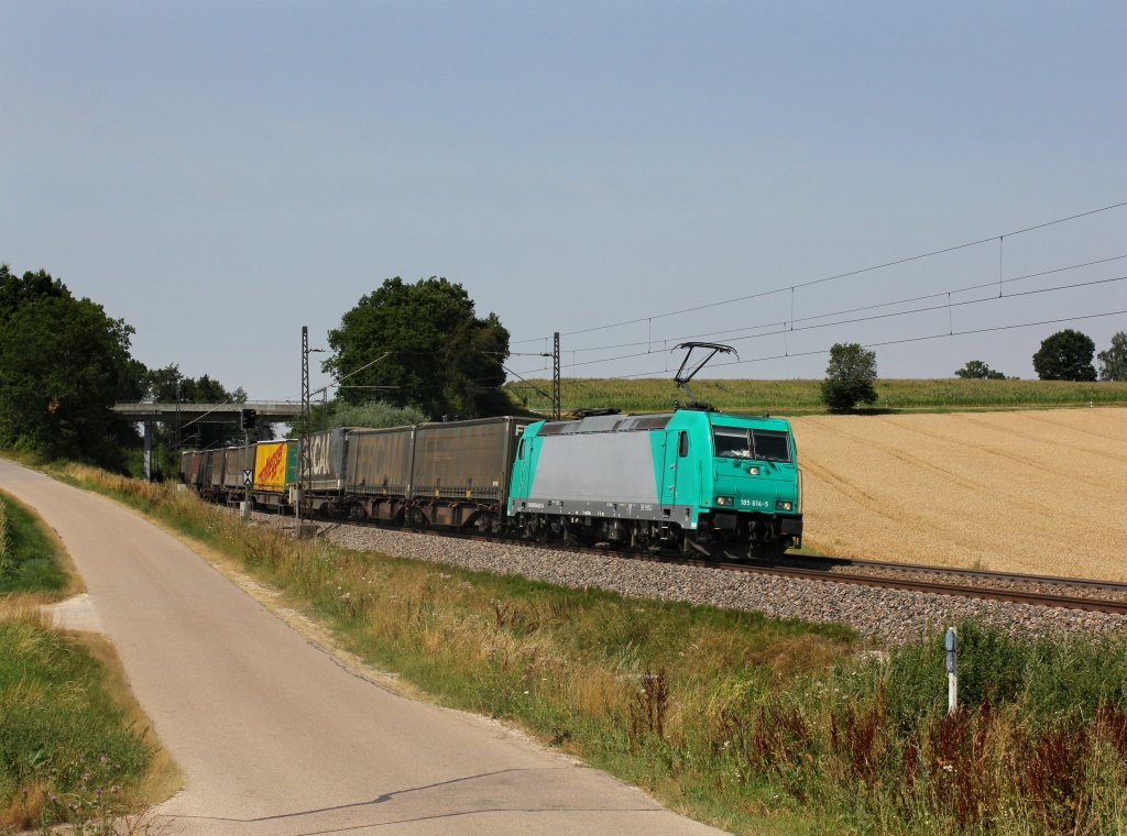 Die 185 614 mit einem KLV-Zug am 03.08.2013 unterwegs bei Felsheim.