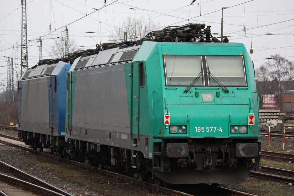 Crossrail Mietlok 185 577 am 2.3.13 abgestellt in Krefeld Hbf.