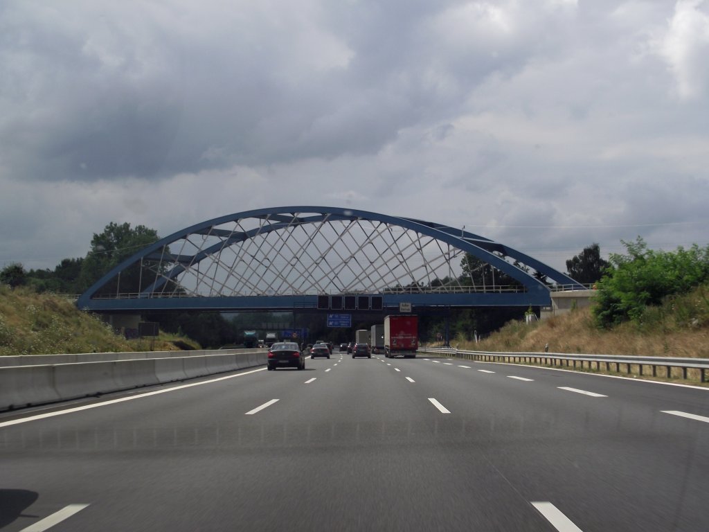 Am 4.8.12 konnte ich TW 5133 (vorne) und TW 5??? (hinten) unterwegs als Linie 4 Richtung Bocklemünd nördlich der Haltestelle "Im Weidenbruch" auf der Brücke über die BAB 3 bildlich festhalten.