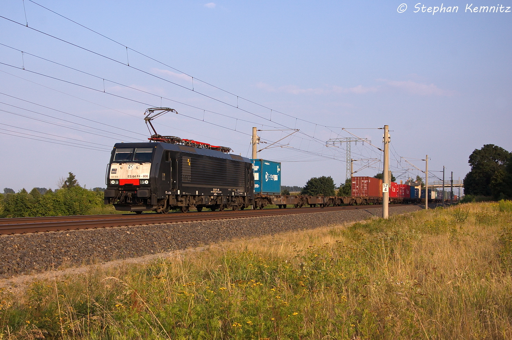 193 806-7 EVB passiert am 09.08.13 mit einem Kistenzug Hamburg-Moorburg Richtung Süden.