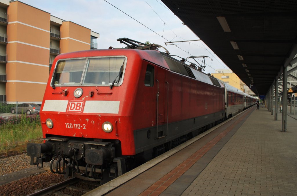 Hier 120 110-2 mit CNL1246 von München Ost nach Berlin Lichtenberg, dieser Zug stand am 6.7.2013 in Potsdam Hbf.