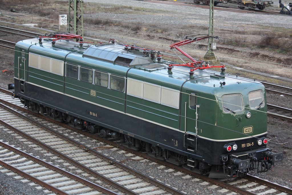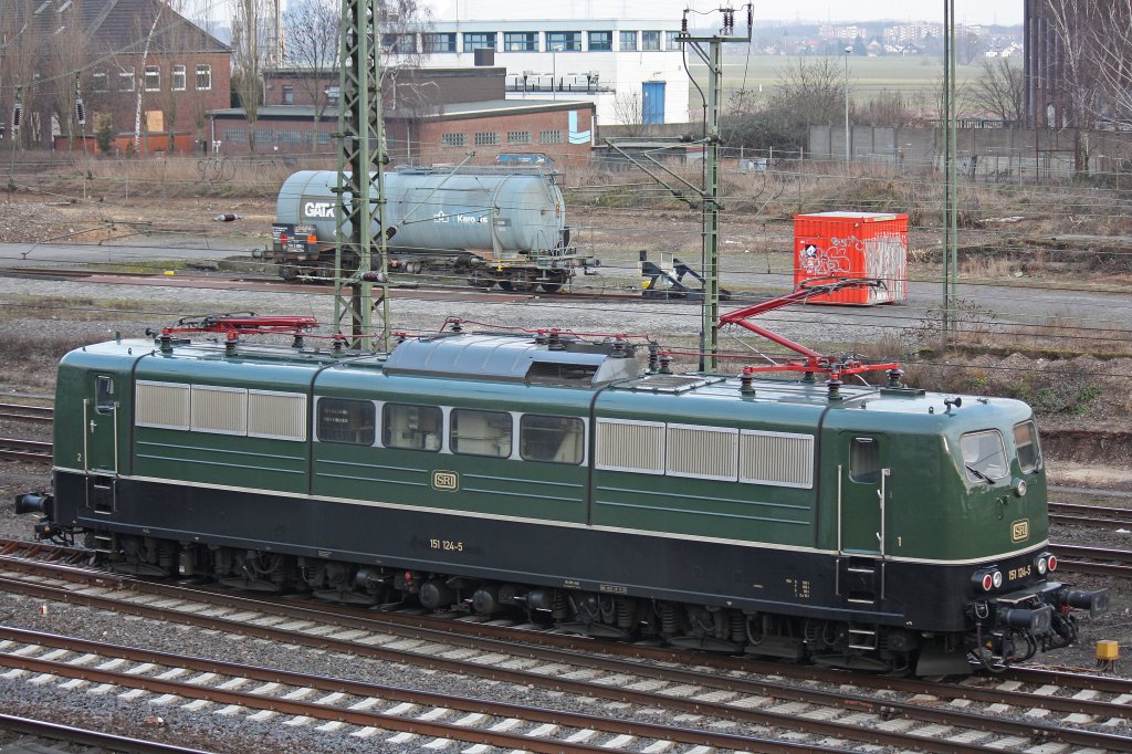 SRI/EGP 151 124 brachte am 2.3.13 einen leeren Containerzug nach Krefeld-Uerdingen und fuhr nach dem Umsetzen Lz wieder Ri.Hamburg zurück.