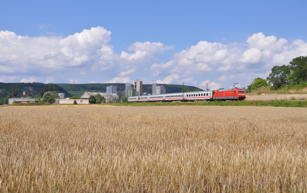 101 129 mit IC 1987 Rottaler Land von Hamburg-Altona nach Passau HBF.Dieser Zug kommt mir bei Karlstadt am Main vor die Linse und Eilt seinem nächsten Halt Würzburg entgegen.Aufgenommen in Karlstadt am Main am 10.8.2