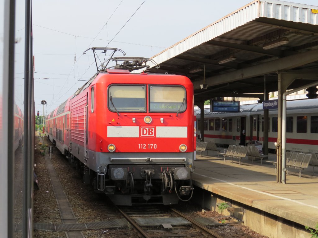 112 170 mit einem RE nach Halle Saale am 25.07.2013 im Magdeburger HBF