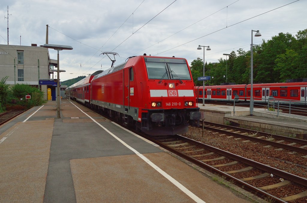 146 210-0 verlässt am 4.8.2013 Neckarelz mit einer RB nach Ulm.