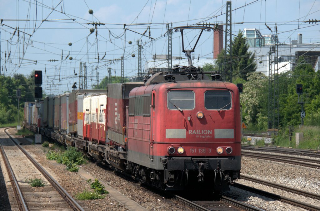 185 148-4 mit einem KLV-Zug am Morgen des 25.07.13 im nördlichen Bahnhofsbereich von Müllheim (Baden). Der Zug ist unterwegs Richtung Norden.