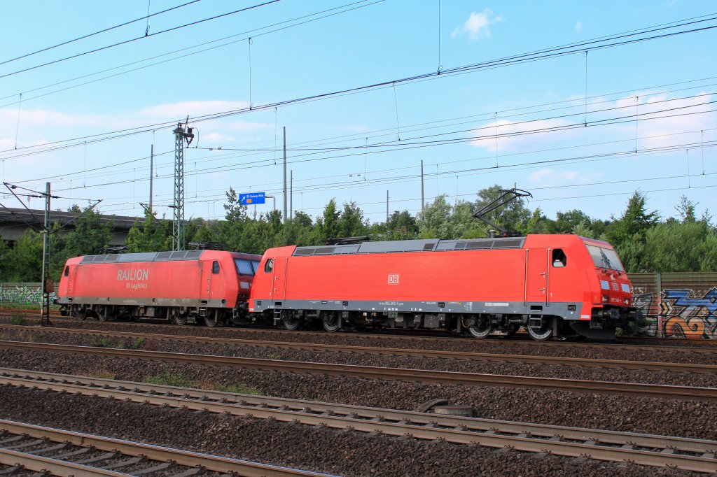 185 362-1 und 145 029-5 als LZ am 31. Juli 2013 in HH-Harburg.