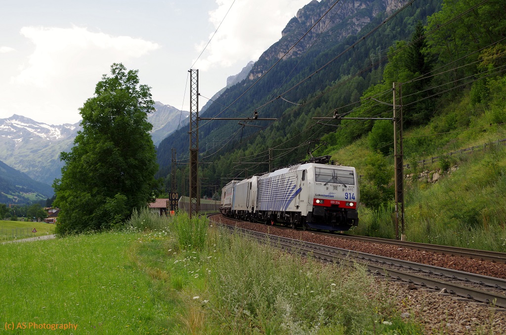 189 914 + 186 xxx Lokomotion / RTC mit Klv-Zug am 03.08.2013 in Colle Isarco gen Bolzano.