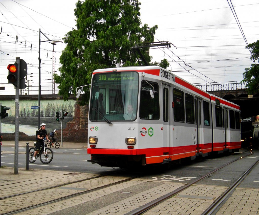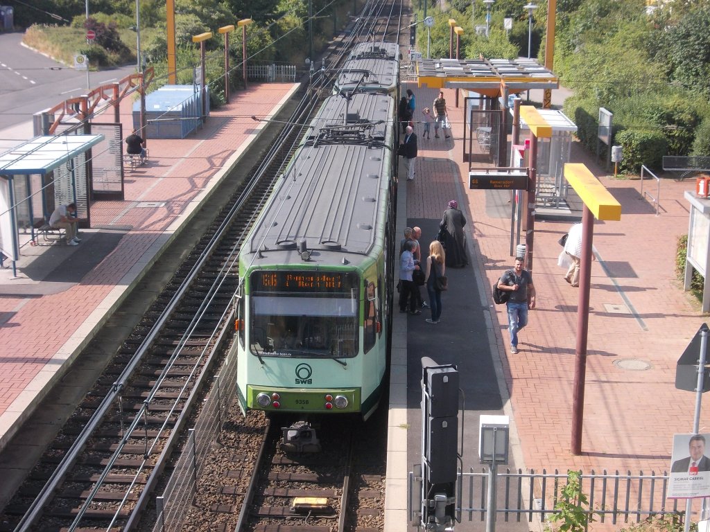 Witten: Straßenbahnlinie 310 nach Bochum-Höntrop Kirche am Hauptbahnhof Witten.(10.8.2013)