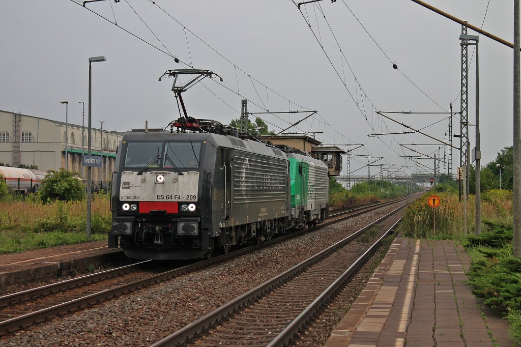 CTL Logistics ES 64 F4-209 zusammen mit akiem Mietlok Fret"chen" 37041 am 09.08.2013 als Lz durch den Bahnhof von Leuna Werke Nord gen Norden.