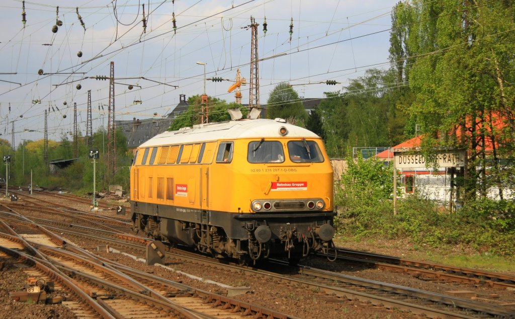 DBG 218 287-1 am 16.04.11 als Lz durch Düsseldorf-Rath Richtung Süden