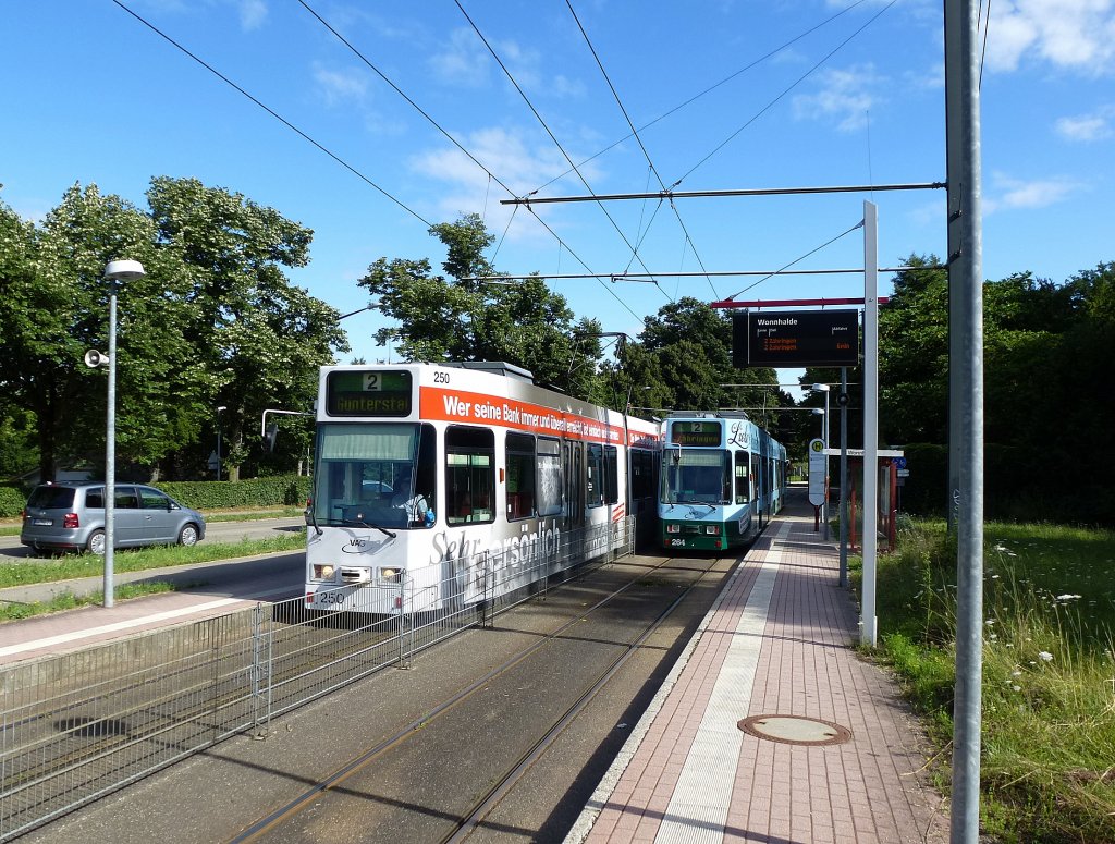 Die Trams der Linien 3 und 11 treffen sih hier gerade in der Haltestelle "Hauptbahnhof Nord"".