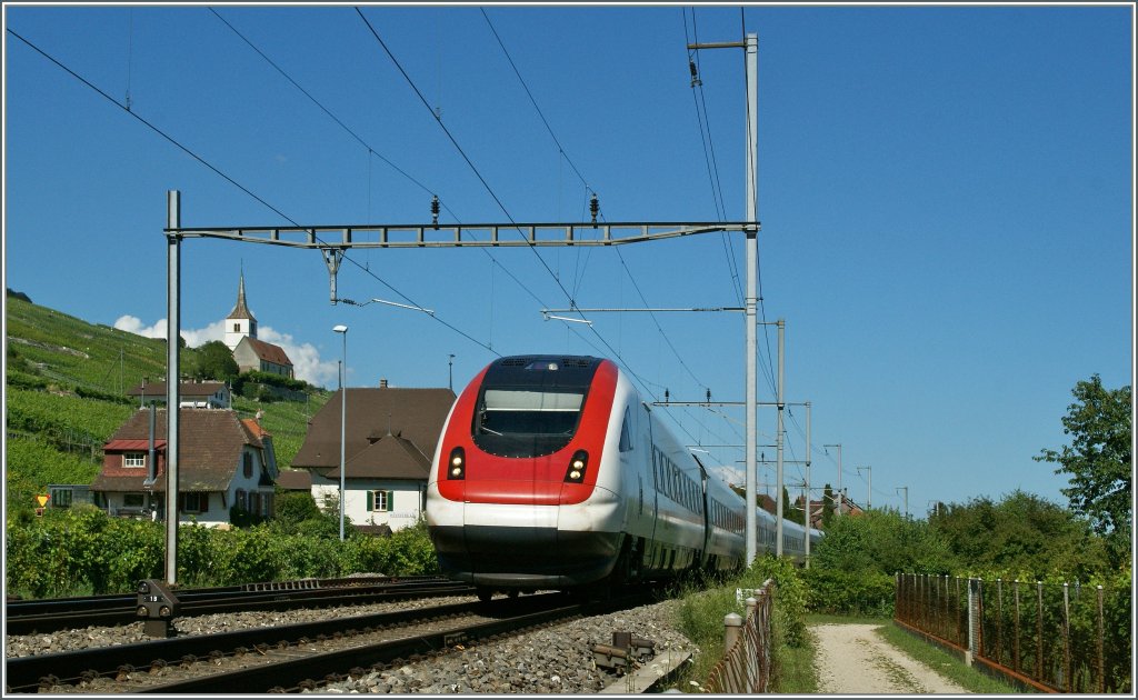 401 082-3 als ICE 3 aus Karlsruhe nach Zürich HB am Morgen des 25.07.13 in Müllheim (Baden).
