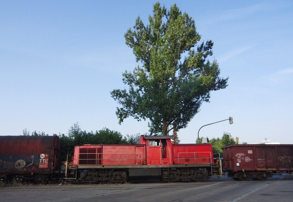 Im Industriegebiet Ulm-Donautal schiebt und zieht am Morgen des 23.07.2013 die 294 620-0 unterschiedliche Wagen zu verschiedenen Firmen .