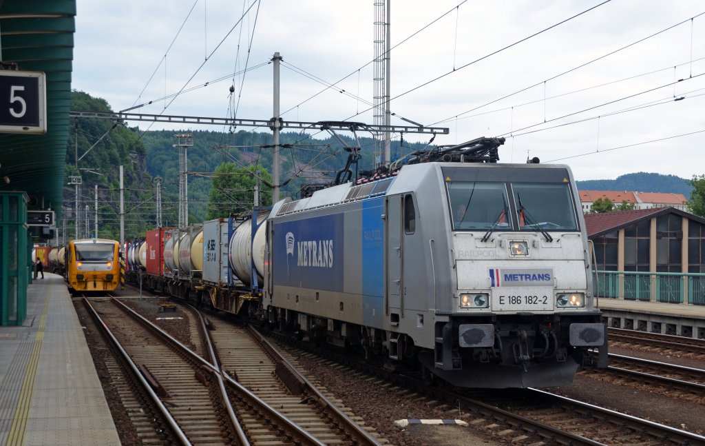 Nachdem am 04.07.13 im Bahnhof Decin ein weiterer Lokführer zugestiegen war, setzte 186 182 der Metrans ihre Fahrt durch Tschechien fort.