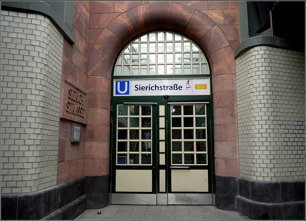 Nostalgisch: Eingangsportal der restaurierten Hamburger U-Bahnstation "Sierichstraße", jetzt wieder mit (vollautomatischen) Türen. 11.8.2013