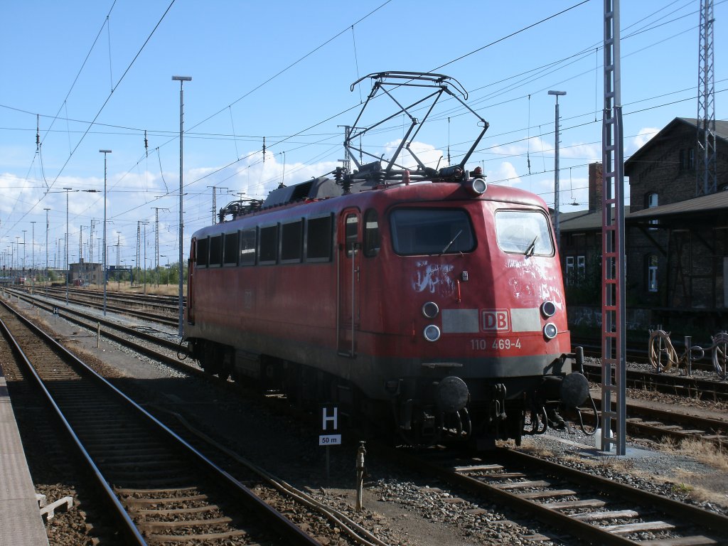 110 469 wartete,am 14.August 2013,in Stralsund auf den EC 378 aus Bratislava den die Lok bis Binz übernahm.