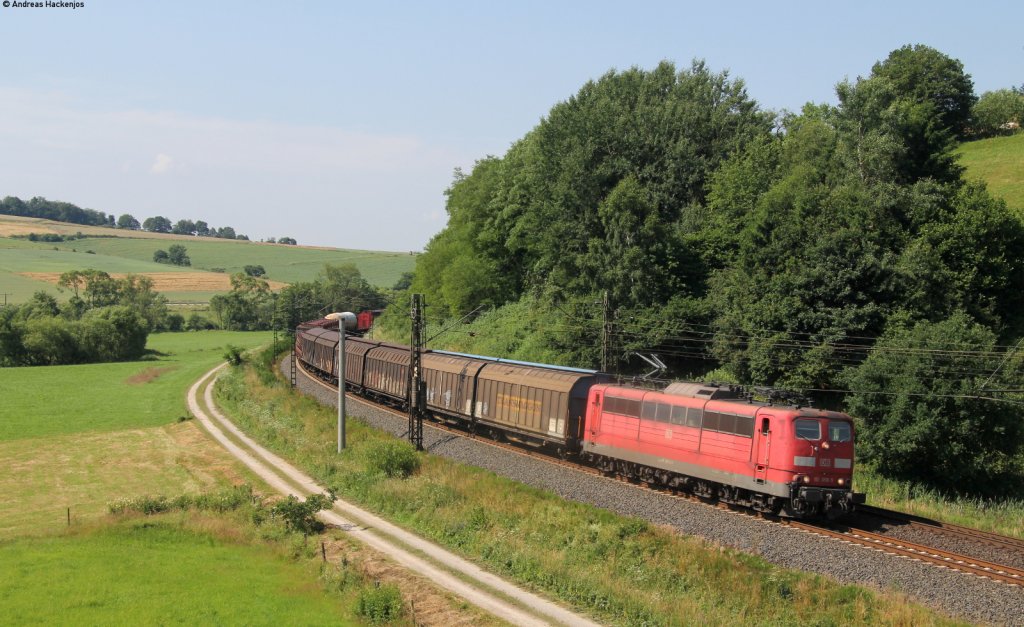 Rhenus 101 (202 423-0) am 25.06.2013 mit der wöchentlichen Müllübergabe von Freiburg Gbf zur Müllverbrennungsanlage in Heiterheim. Hier ist die Üg in der südlichen Kurve von Schallstadt in Richtung Norsingen unterwgs.