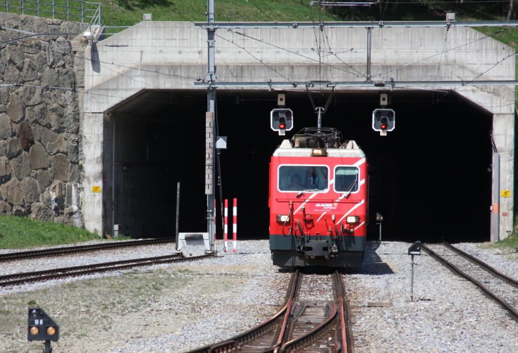 Lok HGe 4/4 Nr. 108 ist Zuglok und verlässt hier gerade den Furka