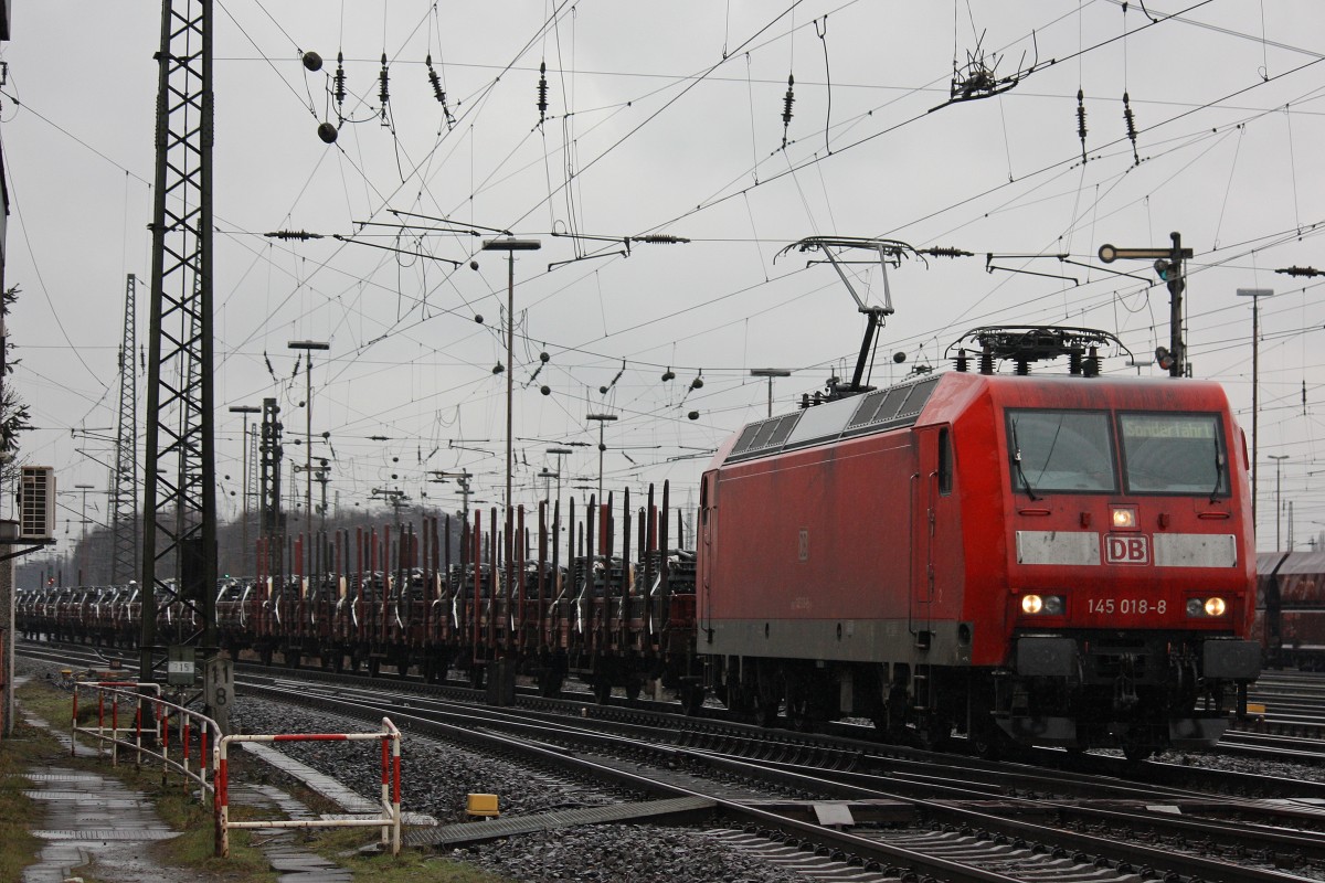 145 018 fuhr am 9.3.13 mit neuen Drehgestellen durch Oberhausen-West.