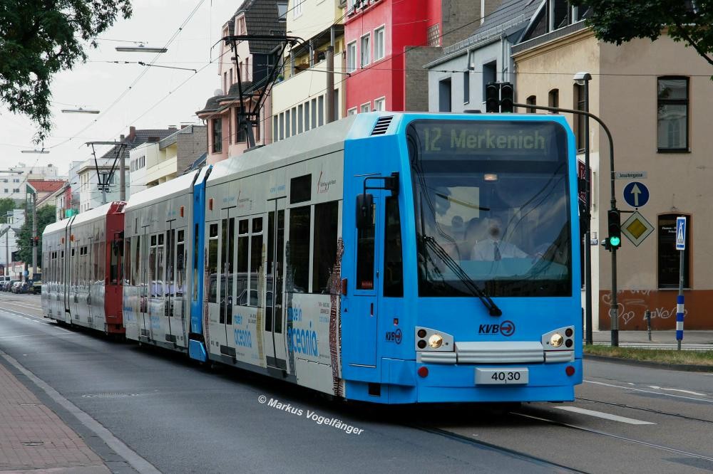 4030 mit neuer Ganzreklame "Rautenstrauch-Joest-Museum" auf der Neusser Straße am 15.08.2013.