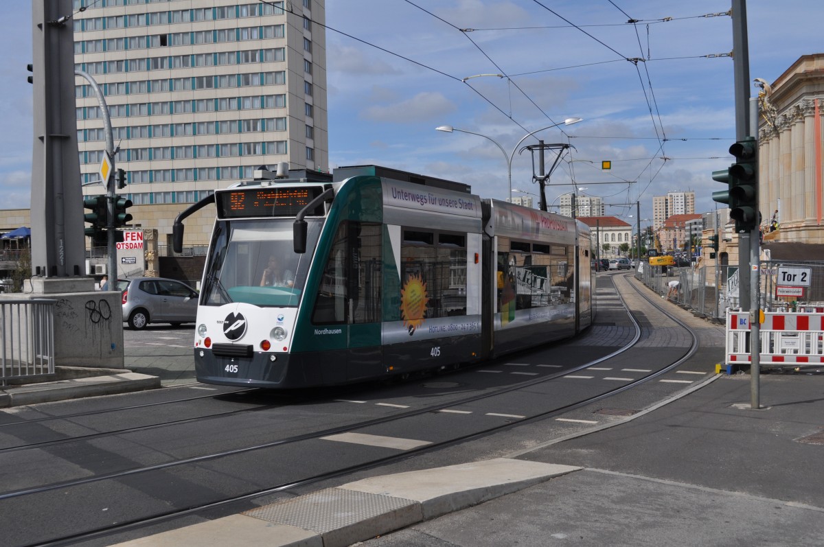 Siemens Combino 405 Nordhausen auf der Linie 92 zum Kirchsteigfeld. Aufgenommen am 10.08.2013
