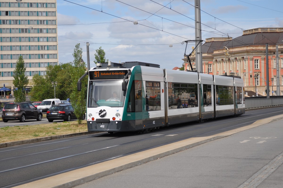 Siemens Combino 412 Ijburg auf der Linie 91 zum Bahnhof Rehbrücke. Aufgenommen am 10.08.2013
