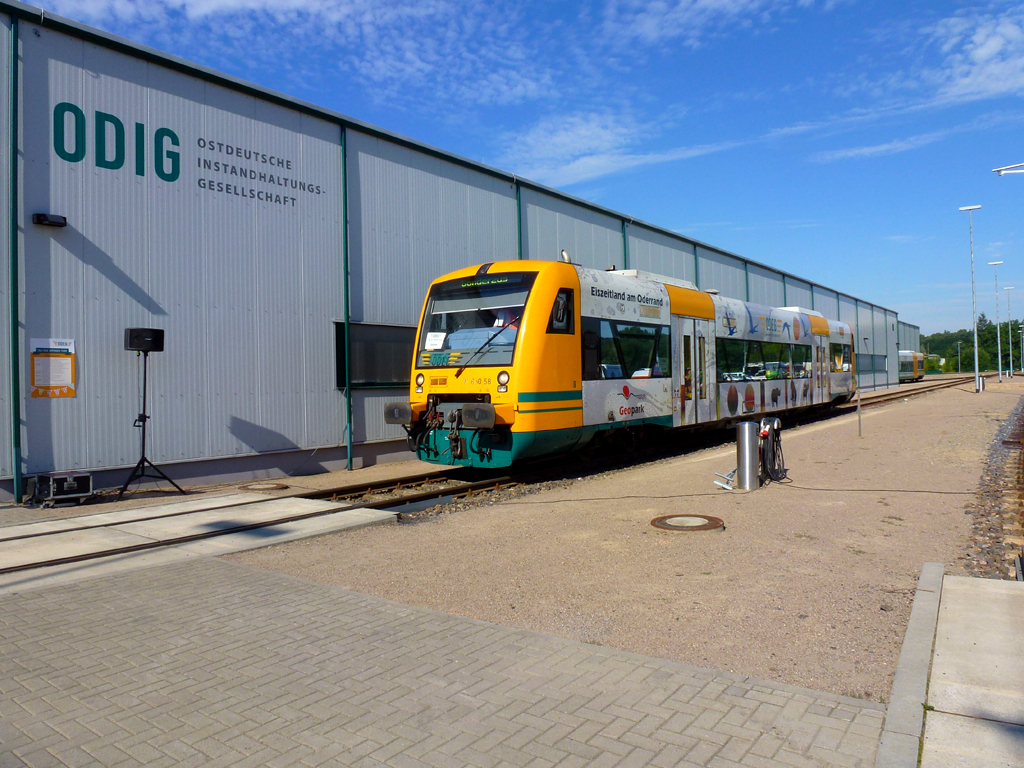 17. August 2013 - Der Werbe-Zug der ODEG "Eiszeitland am Oderrand" im ODEG Betriebshof.