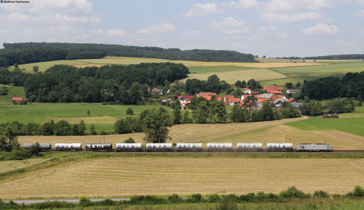 185 692 Railpool mit Gaskesselwagenzug am 13.08.2013 in Gemünden am Main gen Würzburg.